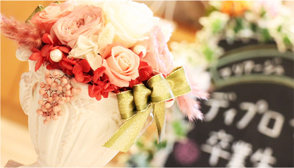 プリザーブドフラワーの資格コースは基礎からウェディングブーケ制作まで、幅広い技術を身につけていただけるコースです。