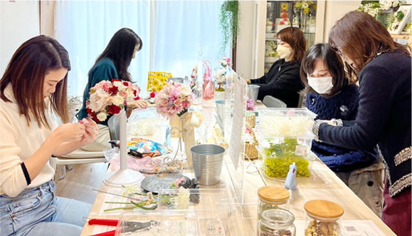 お互いに好きなお花を通して繋がったご縁なので、来て頂いた皆様には楽しい時間を過ごして頂きたい…という気持ちで、お迎えしております。