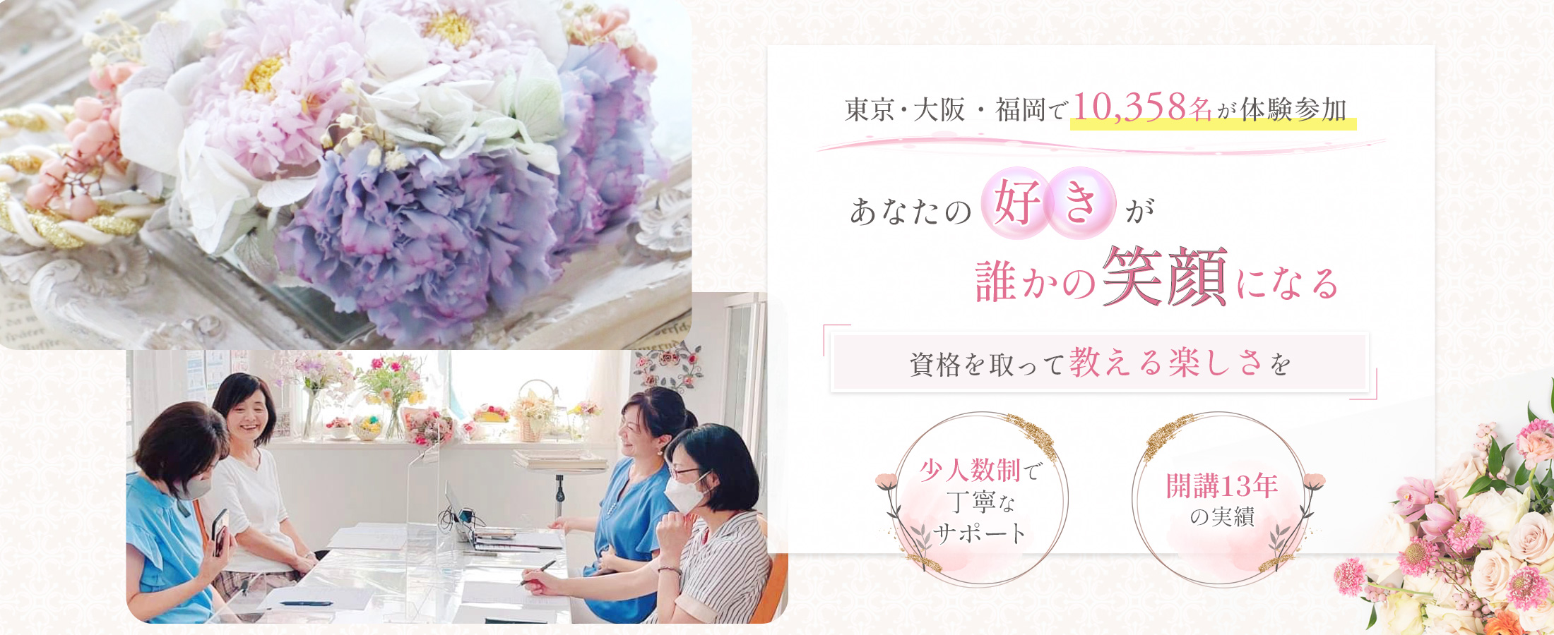 「お花が好きだから、ちょっと作ってみたい」そんなお気軽な気持ちでお越しください。